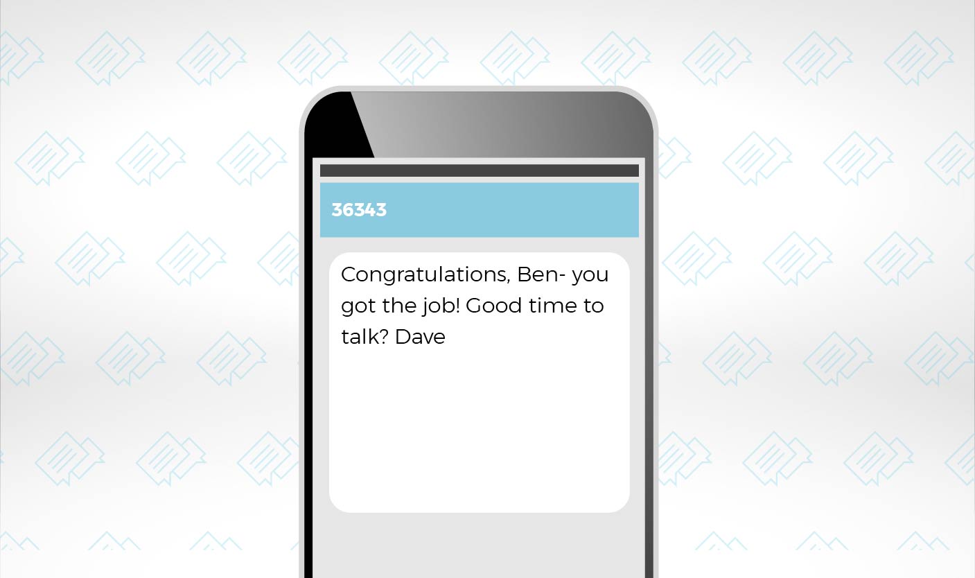 Here’s a text message Dave at Top Talent, a technical recruiter, sent Ben, a developer: