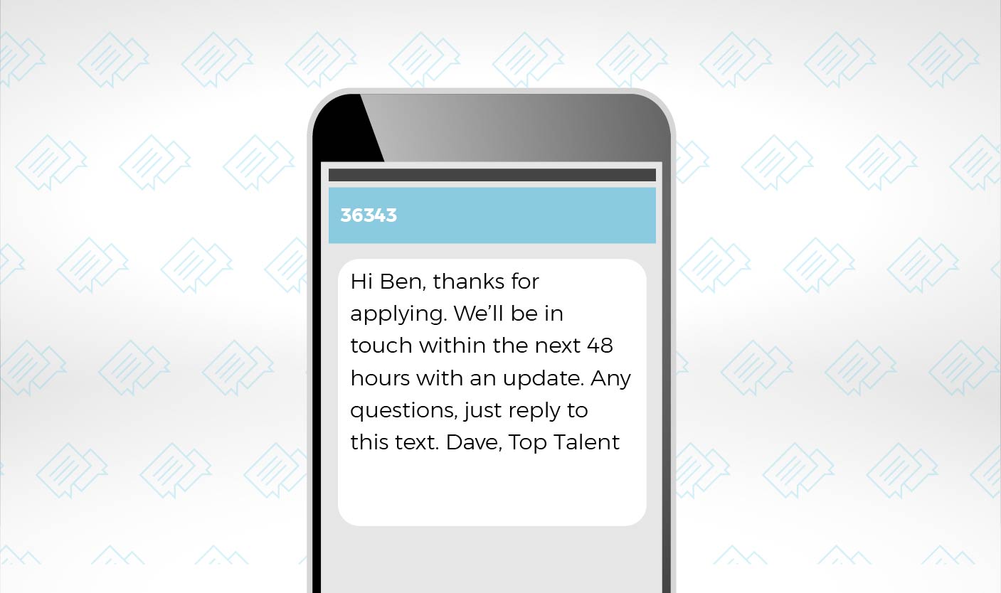 At the same time, Dave texted the other candidates to update them and motivate them to stay in Top Talent’s texting database.
